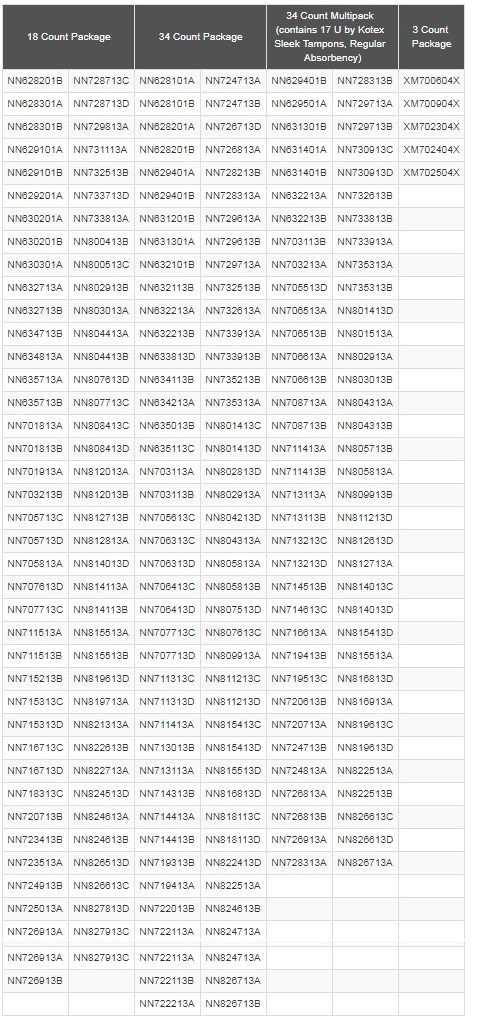 The recall is limited to specific lots of U by Kotex® Sleek® Tampons, Regular Absorbency, that were manufactured between October 7, 2016, and October 16, 2018, and distributed between October 17, 2016, and October 23, 2018.