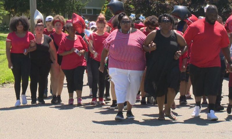 People gathered on Parkwood Drive to honor Jeremiah Barnes Sunday afternoon with a walk.