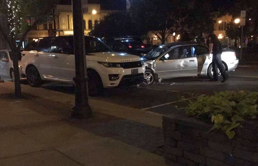 Officers were called to North Park Avenue and Courthouse Square just after midnight early Thursday where a car had crashed into an SUV.