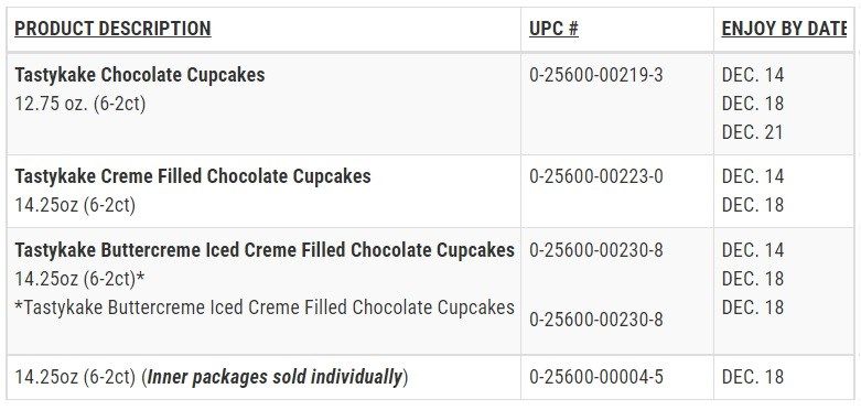 See below for the product list, UPCs, and “enjoy by” dates.