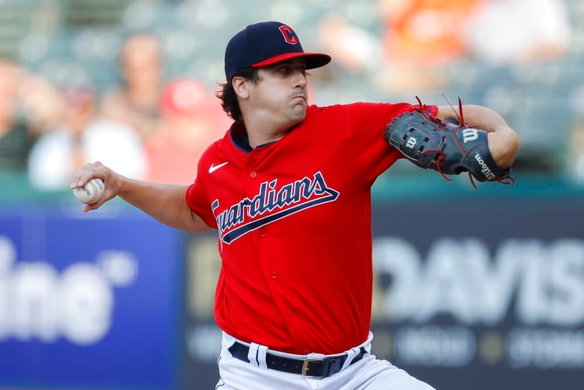 Cleveland Guardians starting pitcher Cal Quantrill delivers against the Baltimore Orioles during the first inning of a baseball game Tuesday, Aug. 30, 2022, in Cleveland.