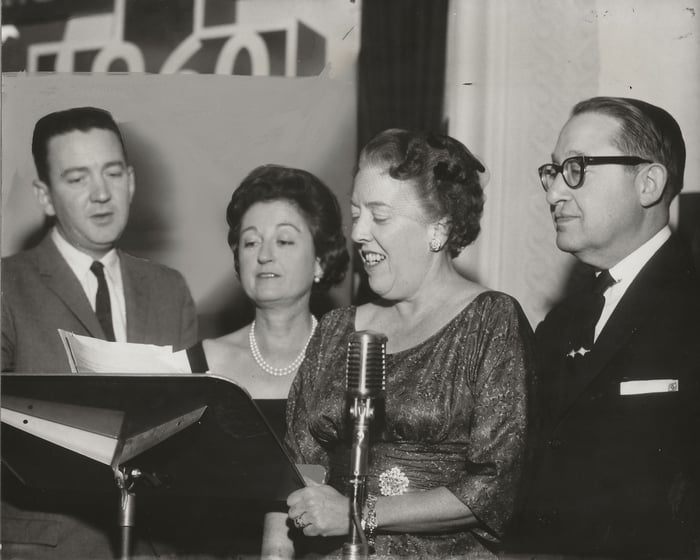 Vindicator file photo / November 10, 1960 | John Griffith and Mrs. Sidney Moyer of the Youngstown Players, joined by Mrs. L.D. McPhee, executive director of the Mahoning Chapter of the Red Cross, and Dr. Sidney M. Berkowitz, a board member, gave a stirring recitation of the exploits of volunteers in the early days of the Red Cross at the chapter’s anniversary dinner 62 years ago.