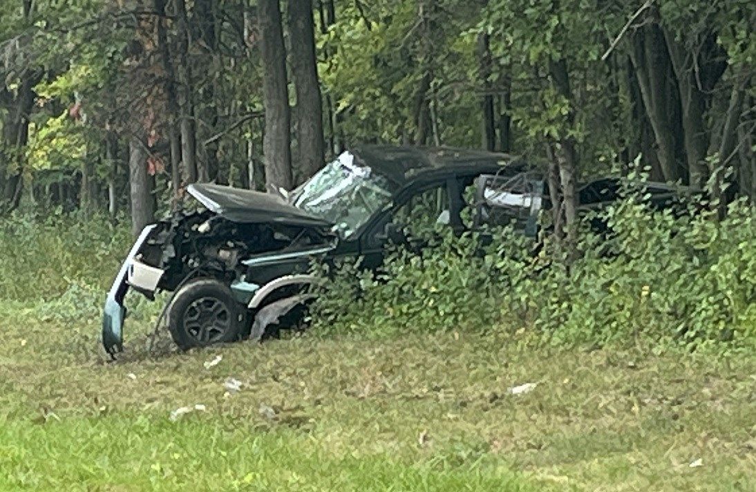 First responders removed the woman from the wreckage and took her to a hospital. State troopers say it appears her injuries are not life-threatening.