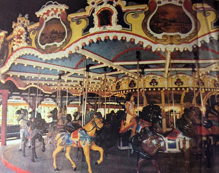 21 WFMJ archives / October 7, 1984 | One of the last photos taken of the carousel while it was still operating at Idora Park was taken in September 1984 by Vindicator photographer Lloyd S. Jones and was the subject of a Rotogravure layout published 40 years ago. The carousel, built by the Philadelphia Toboggan Co. in 1922, now resides in a glass enclosure beneath the Brooklyn Bridge.