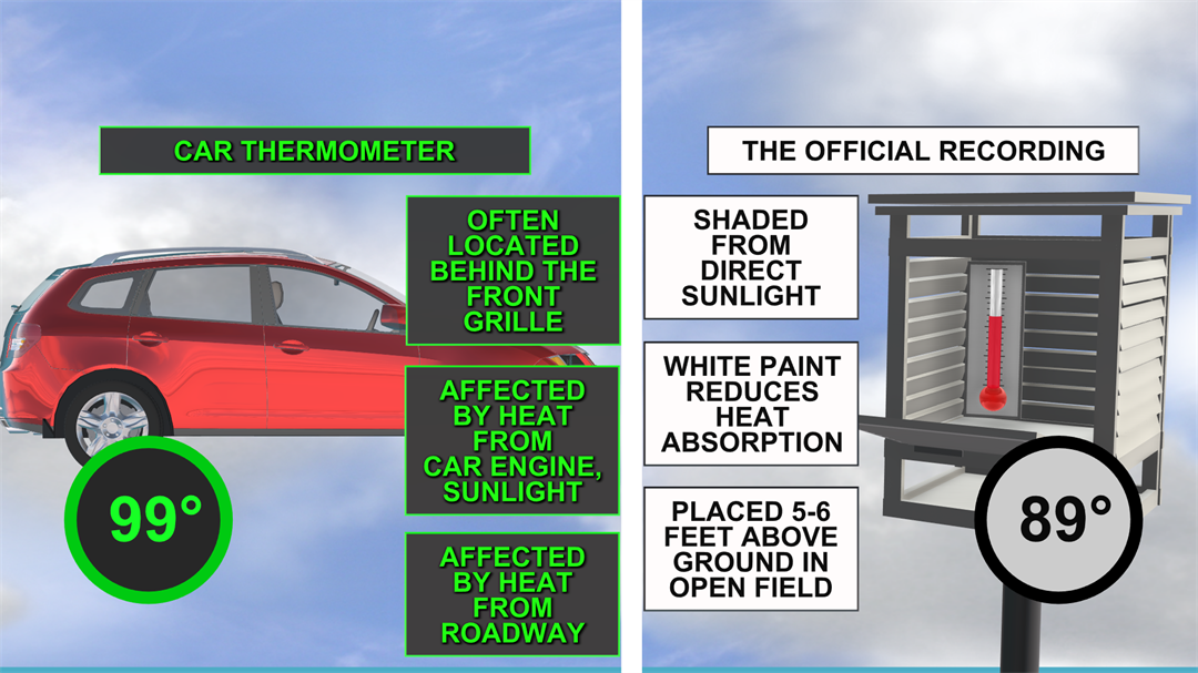 We’ve all gotten into our cars on a hot summer day and looked at our dashboard to see just how hot it actually is outside. The temperature reading in your car however, can be very inaccurate when it comes to properly representing the air temperature.