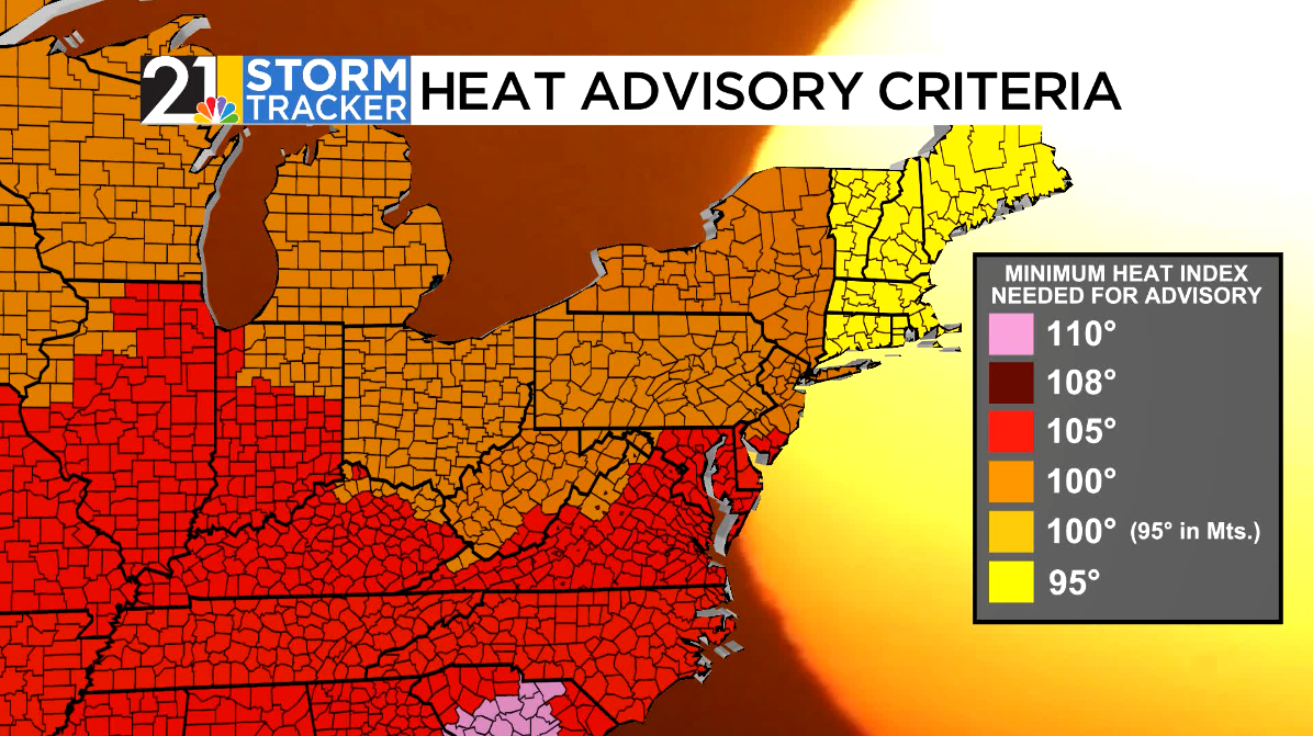 Though heat waves don’t cause the dramatic damage that other weather-related phenomena are responsible for, such as floods or tornadoes, their impact on those with existing health conditions makes it the leading weather-related cause of death in the United States. As such, the national Weather Service aims to issue heat alerts to communicate its impacts to the public. There are three levels, all conveying varying degrees of heat and timing. A heat advisory is issued when there is high heat in the area, but not enough to reach an extreme value. In Ohio, Heat Advisories are issued when the heat index, a value factoring in both temperature and humidity, is forecasted to reach 100°. This advisory value changes based on location. Parts of the Deep South get warmer regularly, so a heat index of 110° would then trigger a Heat Advisory. Further east, New England only needs a heat index of 95° in order for NWS offices to issue a heat advisory.