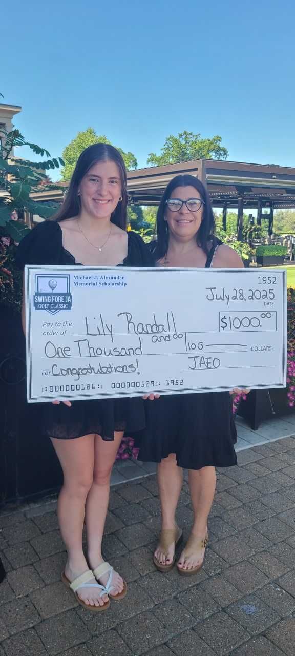 Alexander's wife, children and brothers were in attendance to present Lily Randall, a recent Brookfield High School graduate who will be attending Ohio State University, with a $1,000 check.