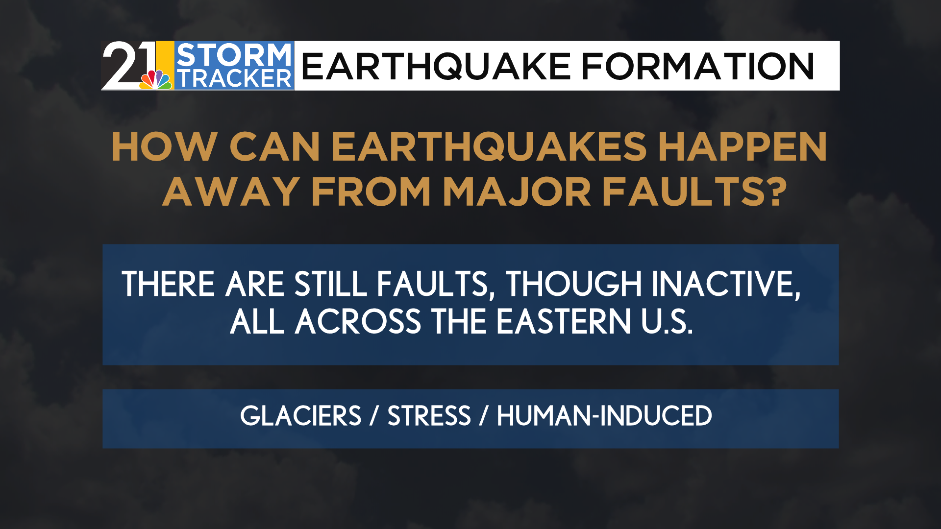 The original question, however, still needs to be answered- how do earthquakes form in the middle of a continental plate? While activity largely occurs on active faults, there are tons of inactive faults across the eastern half of our country. Millions of years ago, our region used to be a hotbed for seismic activity. However, faults are antiquated and are underneath the ground today. While not actively moving, other factors could stir up these faults and cause low-scale quakes. The Earth’s crust is still recovering from glacial melt from the last ice age, officially coined “glacial rebound”. This causes the crust to move upwards and potentially causes stress on ancient fault lines. Additionally, movement from other plates could bleed some stress further into the plate, causing small bouts of tension that can get relieved by interior faults.