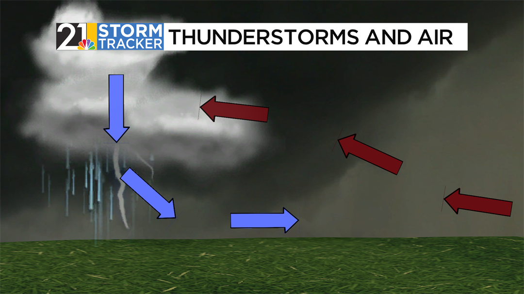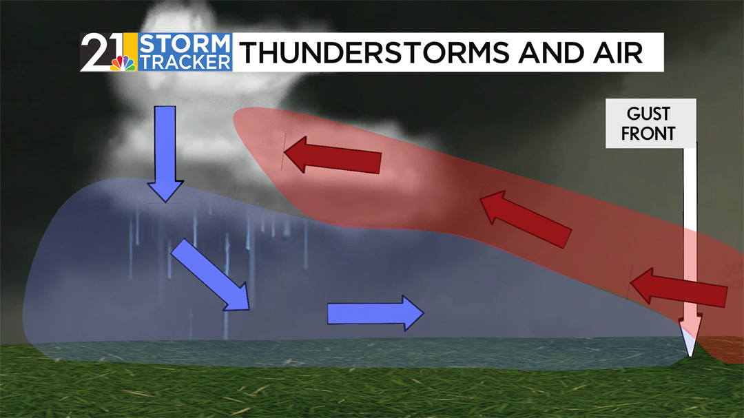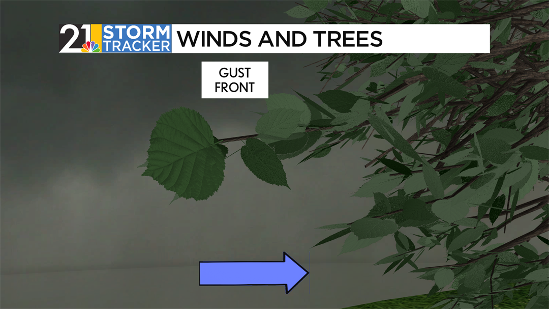 When storms are strong, gust fronts are particularly notable. This is because the change between air masses can be so stark, where a calm summer breeze can quickly turn into strong, gusty winds from the opposite direction before a storm. It isn’t just noticeable with us, as nature can respond to it as well. This change in wind direction is the primary reason why trees’ leaves suddenly flip, and the timing also aligns with the leaves flipping before the storm’s arrival.