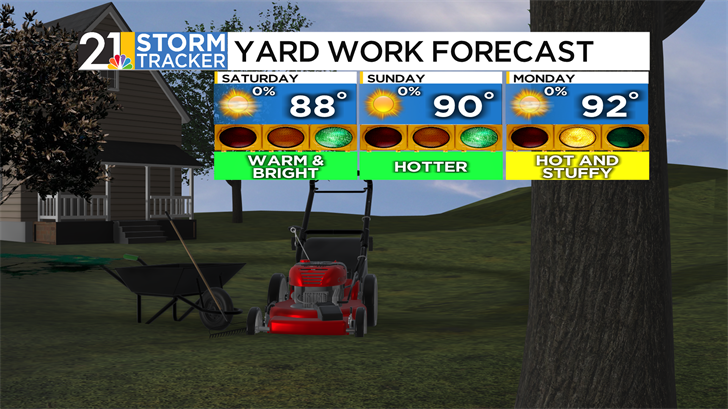 It will stay dry for any outdoor weekend plans. Mostly sunny skies are expected on Saturday with temperatures jumping into the upper 80s. Sunday will be the warmer of the two days with highs potentially reaching 90 degrees in some spots.