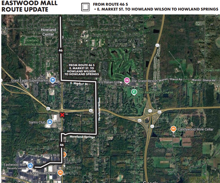 The Eastwood Mall has provided the following alternative route for drivers to take to the mall: