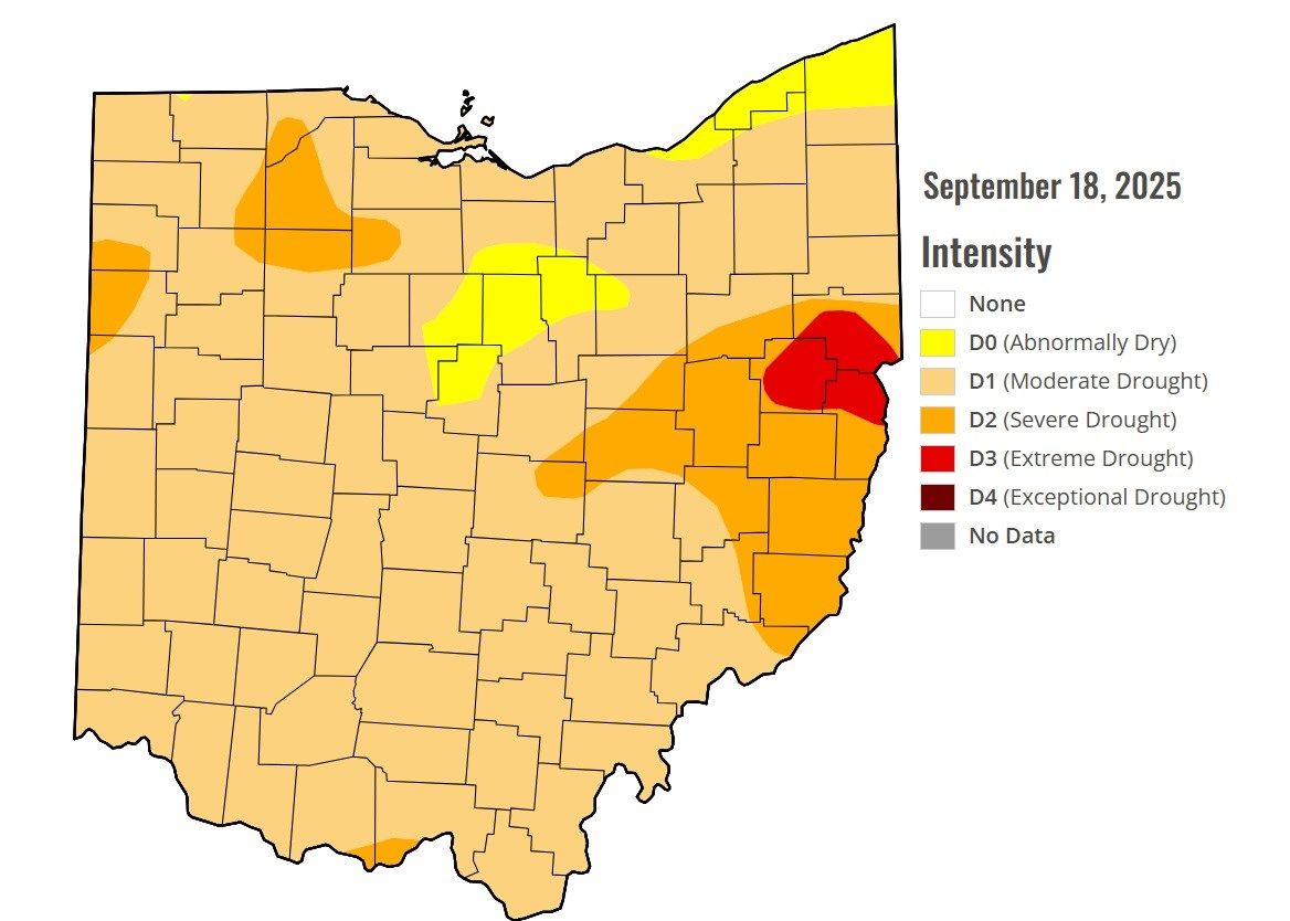 According to a U.S. Drought Monitor map released Thursday, southern and central parts of Columbiana County are now experiencing extreme drought, an increase from the severe conditions reported last week. The rest of the county, which had been under a moderate drought, is now classified as a severe drought area.