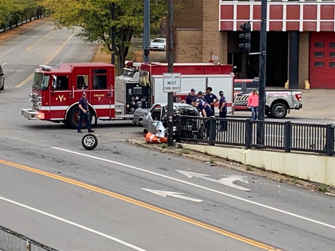 Single car crash sends driver to hospital in downtown Youngstown Monday