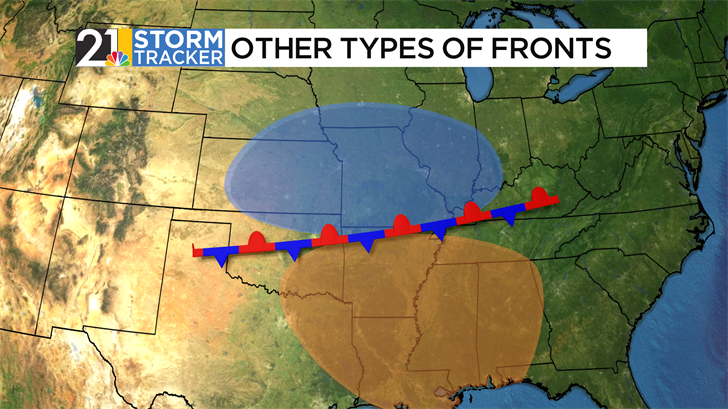 Stationary fronts are common in the tropics and can even be found in our area during the summer months. As the name suggests, these boundaries contain separate air masses on each side, but provide no movement as no side is strong enough to displace the other. As a result, each side of a stationary front is typically subject to prolonged unsettled weather, though not very strong.