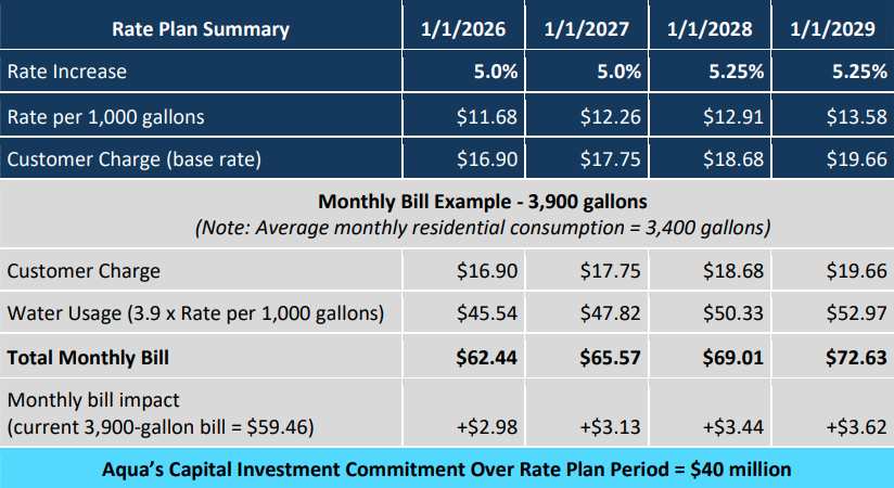 Each municipality will have to pass ordinances or resolutions to approve the rate plan effective January 1, 2026.