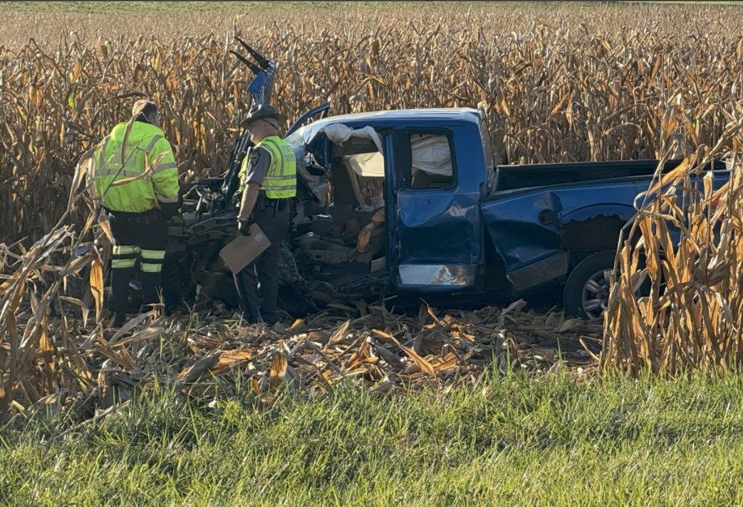 A pickup truck and a septic tank truck sideswiped each other just north of Cadwallader Sonk Road shortly before 7:30 a.m., sending the car about 100 yards off the road into a cornfield and the truck into a ditch.