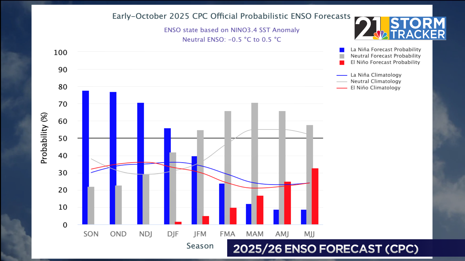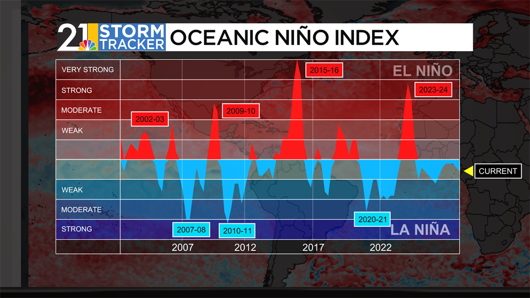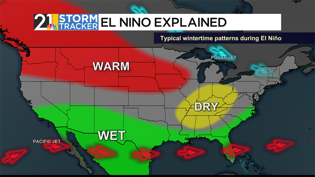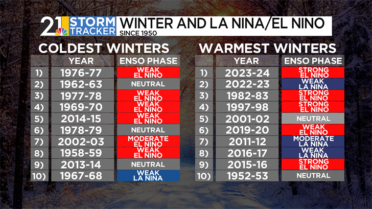 ENSO is just one of several components to think about when forecasting the winter season. Eric Wilhelm will be releasing his yearly winter weather forecast on Tuesday, November 11th, on WFMJ live, the WFMJ Website, and the Storm Tracker 21 app.