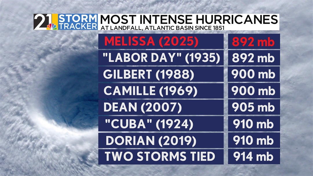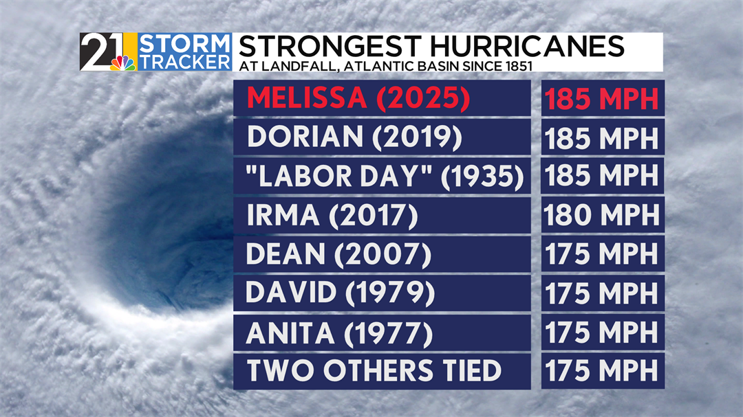 The storm made landfall at that same strength. This was the first time a hurricane made landfall at this speed in six years —and also tied for the strongest Atlantic storm ever to make landfall. Melissa’s strength beats other storms whose names are common, such as Irma, Dorian, Dean, and David.