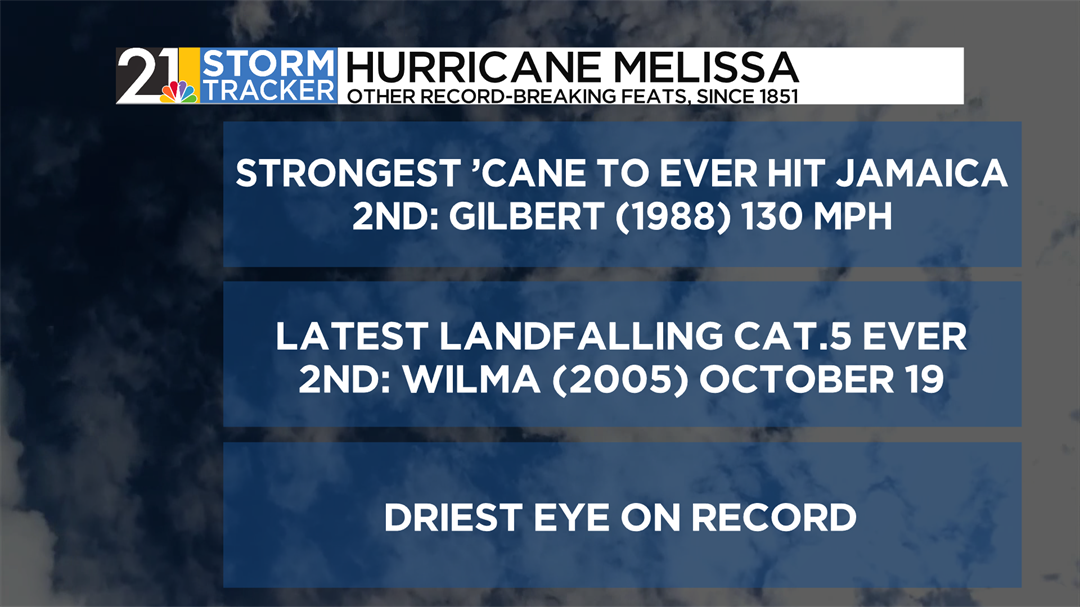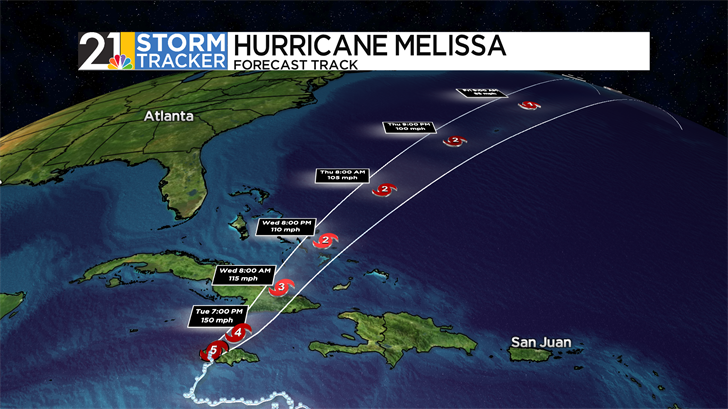 As of 3 p.m. Tuesday, Melissa is still a Category 5 hurricane, though weaker with sustained winds at 160mph as it travels through the island. Get up-to-date news about this hurricane and more with the Storm Tracker 21 app.