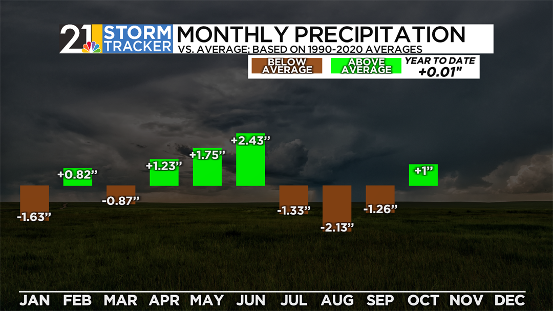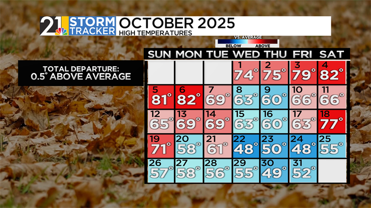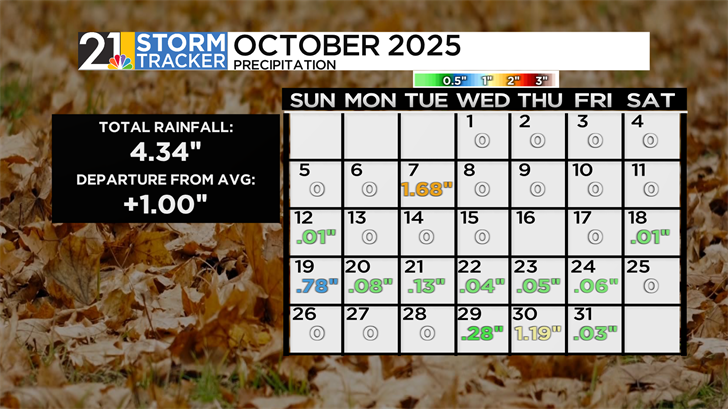 There were six straight days of warm, dry weather, as the area was riding off these conditions to end September. A heavy-hitting system arrived on October 7th, bringing over an inch of rain in most spots, especially north of I-80. While dry for the following few days, conditions did cool a bit.