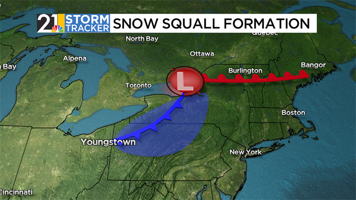 While snow squalls may not be too familiar for everyone, especially over the state line in Ohio, these bands are the wintry version of thunderstorm squall lines we are accustomed to.