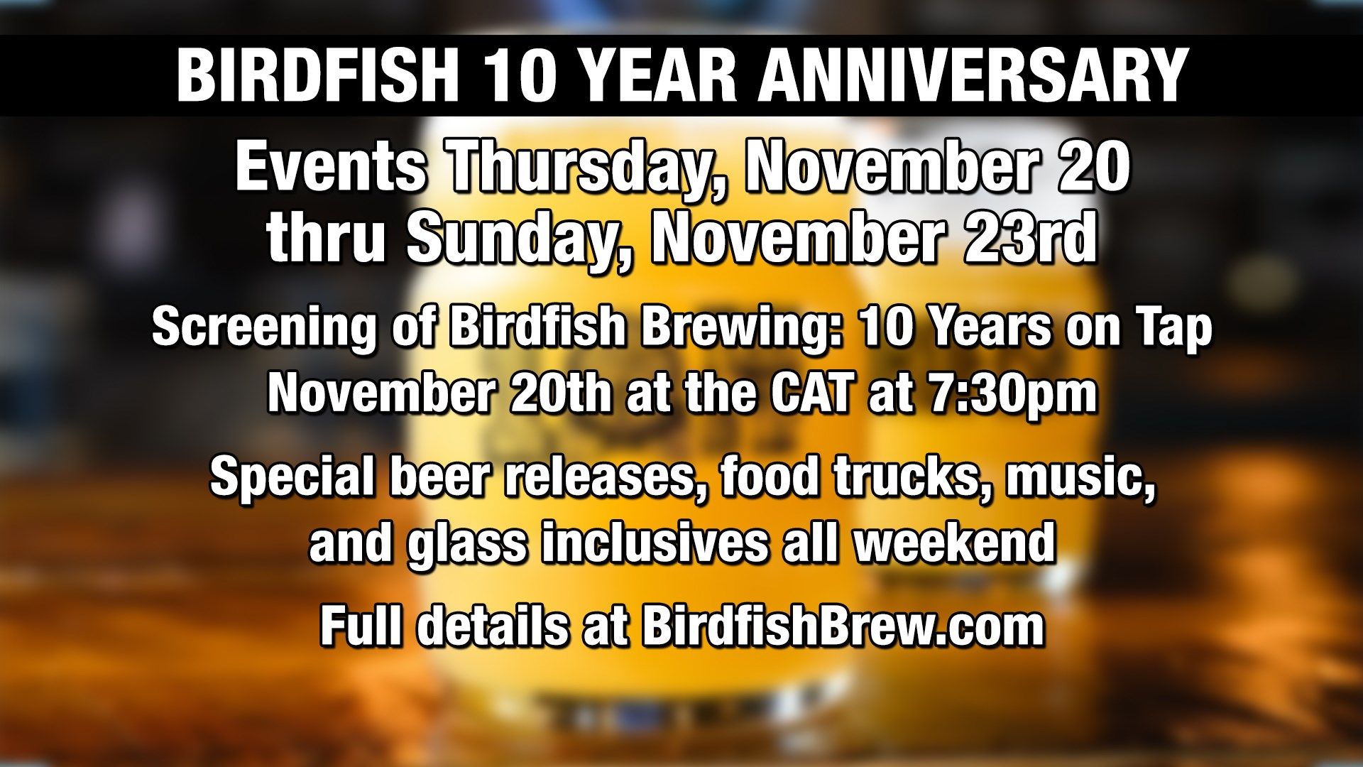 The brewery is kicking off a weekend celebration starting Thursday, November 20th, with a free screening of the locally filmed documentary Birdfish Brewing: 10 Years on Tap. The documentary was filmed by Tristan Hostetter, a Columbiana-based Journalist and Filmmaker, and showcases "Birdfish’s role in shaping the city’s culture through conversations with patrons, musicians, business owners, and city officials, each reflecting on how the brewery has helped fuel Columbiana’s growth and sense of community."