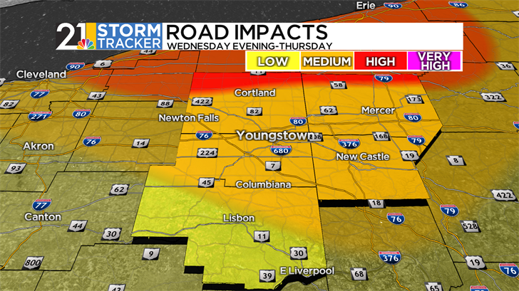 A potent cold front will approach the area on Wednesday, and a big change is on the way for the second half of the week. Before the arrival of the arctic air, it will remain fairly mild overnight into the midday hours Wednesday with readings not far from the 40-degree mark. However, temperatures will tumble rather quickly toward the end of the afternoon, resulting in a change from rain showers to snow showers. The snow will continue to come and go Wednesday evening into the overnight and untreated surfaces will become slick. Wind chill value will settle into the single digits, and we expect them to remain there all day Thursday.