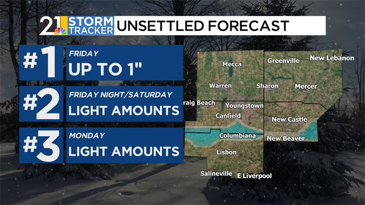 The Valley will be between systems Thursday night, but a weak area of low pressure will scoot through the Great Lakes on Friday, resulting in a few snow showers. Fresh accumulations should be an inch or less. Flurries and light snow will remain a possibility Friday night into parts of Saturday. A fresh batch of pure arctic air is set to surge into the region Saturday night.
