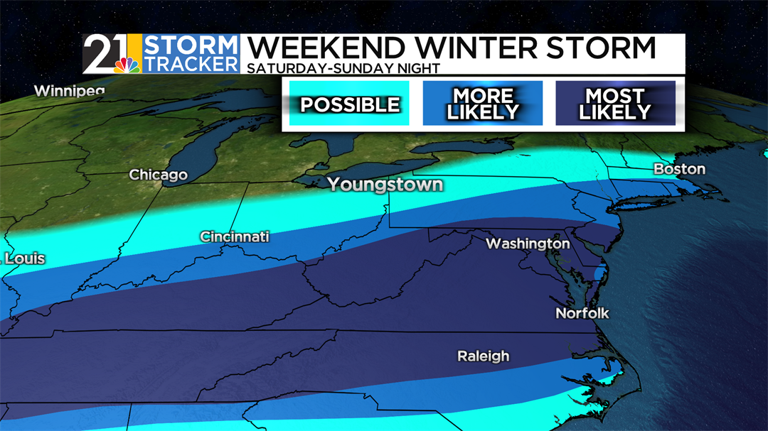 Speaking of the weekend, a major winter storm is expected to impact millions from the mid-South to the mid-Atlantic region Saturday into Sunday. While eastern Ohio and western Pennsylvania will be on the northern fringes of the system, at least some accumulating snow is looking possible....especially during the day Sunday. We'll continue to fine-tune the forecast as the weekend approaches and forecast confidence increases.
