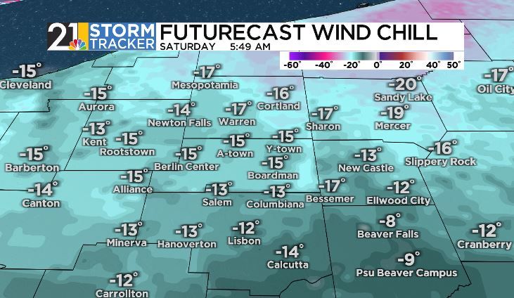 This weekend turns very harsh with windchill values dipping as cold as 20 below zero Saturday morning and staying below zero all day. Air temperatures will only peak in the single digits Saturday afternoon, which could be our coldest day since late January 2019.