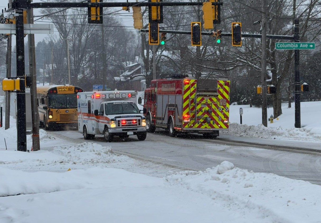 Shortly before 8:30 a.m., dispatchers were told that a school bus and a truck collided at Main Street and Columbia Avenue in Greenville. The intersection was closed during the investigation but has since reopened, according to a social media post by Greenville Firefighters
