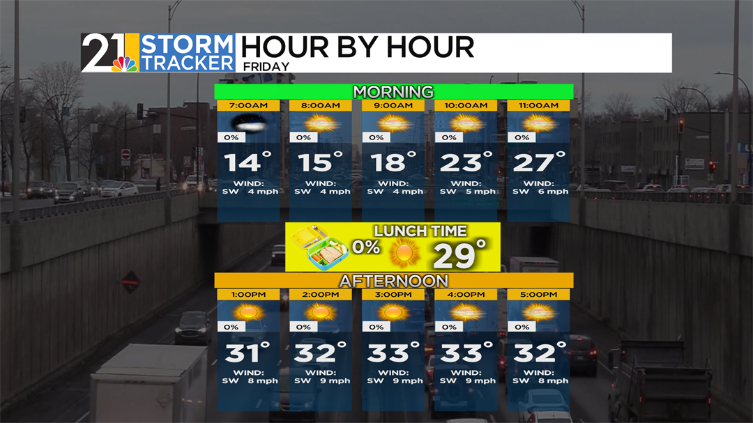 After a pair of gloomy and cold days Wednesday and Thursday, high pressure will build into the region on Friday and will produce a better-looking day. Temperatures will still fall a little shy of the seasonal average, but a good deal of mid-February sunshine will make it feel warmer during the afternoon. Friday night will not be as cold as the previous night.