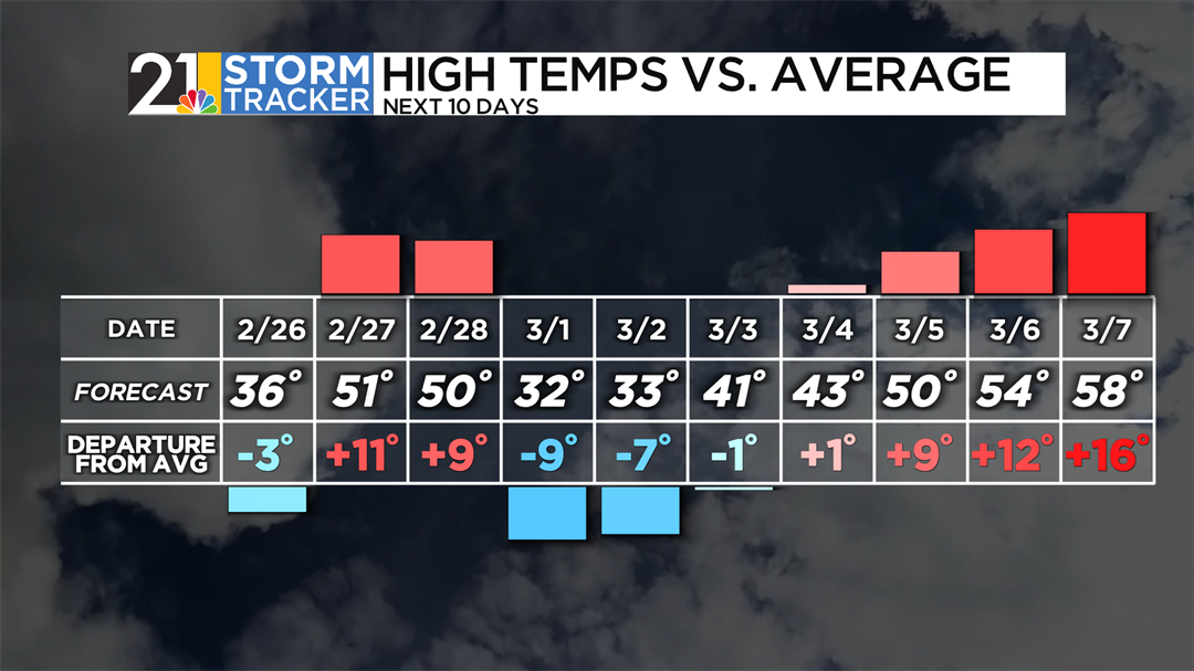 Back to chilly weather Thursday, but February will end on a mild note