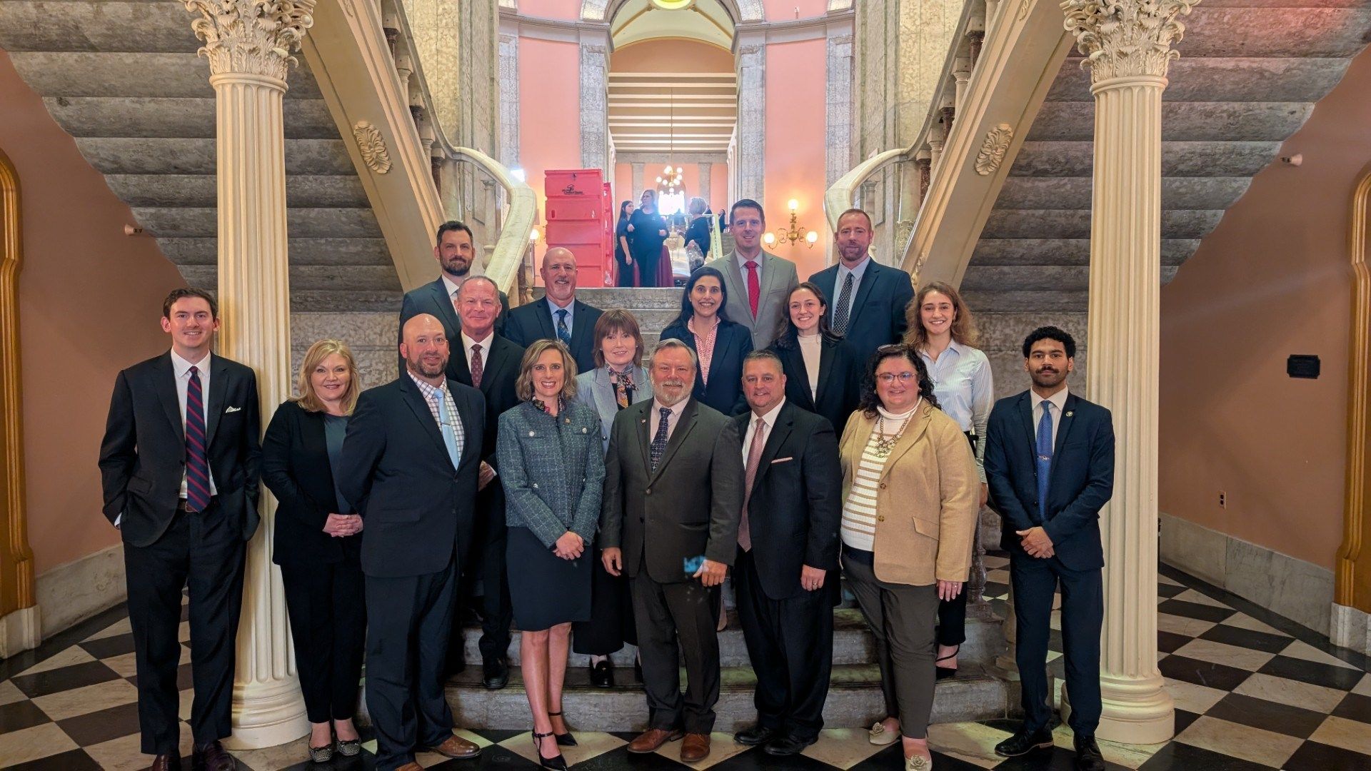 Pictured above is Governor DeWine alongside lobbyists from Byers Minton & Associates and members of Ohio811 staff and board members.