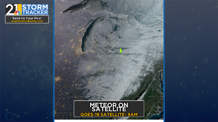 The meteor was officially confirmed by the National Weather Service office in Cleveland, Ohio, using GLM (Geostationary Lightning Mapper) imagery. GLM imagery is typically used to locate and measure lightning strikes using satellites such as GOES-19, several thousand miles above Earth. Just after 9 AM, it captured a vivid yellow streak, just northwest of Cleveland – matching the location of the meteor, whose brightness registered on the imagery.